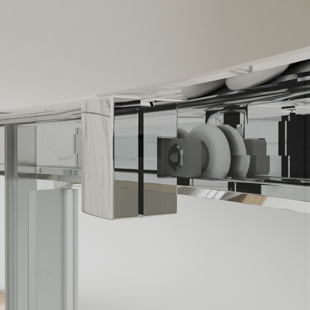 Раздвижная серия душевых ограждений KÜBELE, с начальным артикулом DE018, имеет два варианта дизайна алюминиевых профилей: