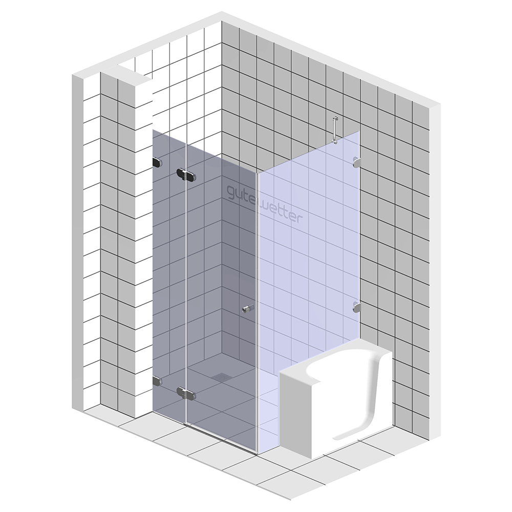 Душевое ограждение трехсегментное с открыванием двери наружу и подъемно-опускным механизмом LUX SQUARE GK-003V1-2522 производства фабрики GuteWetter.