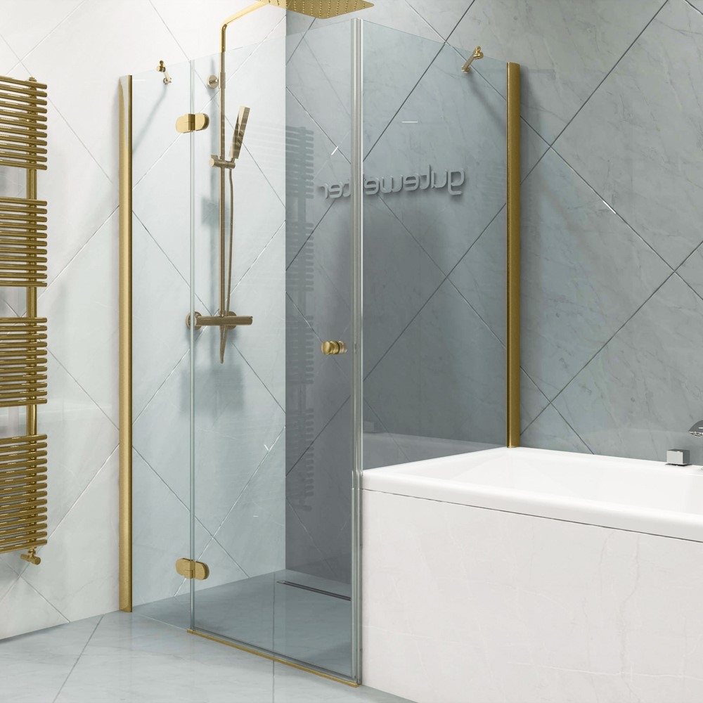 Душевой уголок LUX SQUARE GK-003VP 80x80x200 см, цвет фурнитуры золотой гальванический, цвет стекла выбеленный, стекло закаленное 8 мм, открывание двери левое