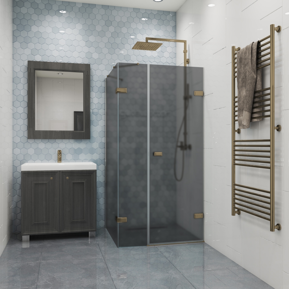 Душевой уголок TREND SQUARE GK-863CP 80x80x200 см, цвет фурнитуры бронзовый, цвет стекла графитовый матовый, стекло закаленное 8 мм / 6 мм, открывание двери левое / правое