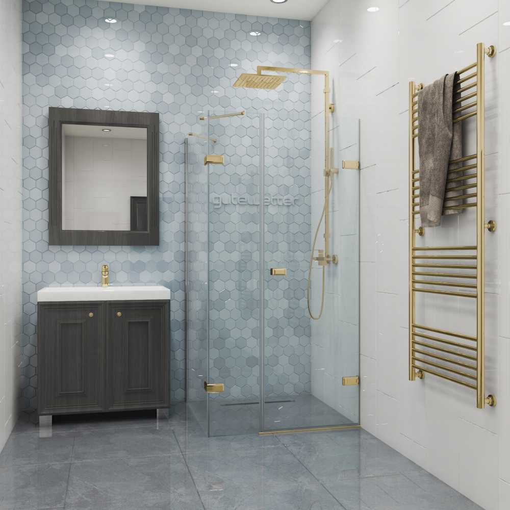Душевой уголок TREND SQUARE GK-863CP 80x80x200 см, цвет фурнитуры золотой металлик, цвет стекла выбеленный, стекло закаленное 8 мм / 6 мм, открывание двери левое / правое