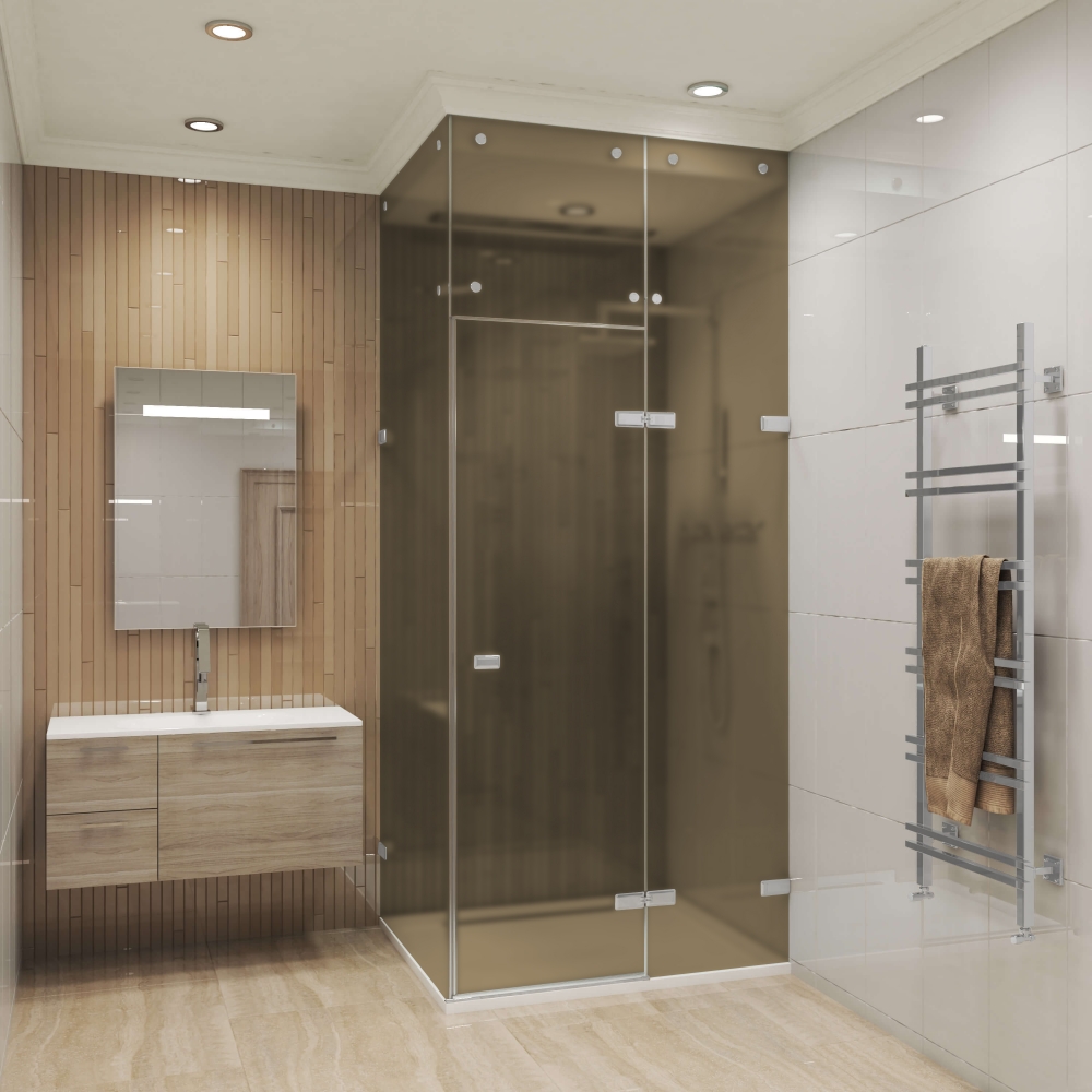 Душевой уголок TREND SQUARE GK-884ZF 90x90x270 см, цвет фурнитуры хром матовый, цвет стекла бронзовый матовый, стекло закаленное 8 мм, открывание двери левое / правое